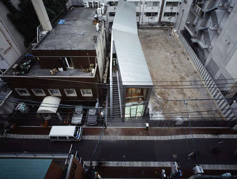 計画地は福岡市の中心部、大名にあります。特有の複雑かつ細分化された地割とそこに展開されている建築・インテリア・看板・ファッションといった都市の視覚的要素が、都市にテーマパークの様な「回遊性」を与え通り行く人々を刺激し続けています。このコンテクストにおいて、 6m×31mという特殊な敷地形状をもつ、スケルトンの商業建築の計画に求められるものは、